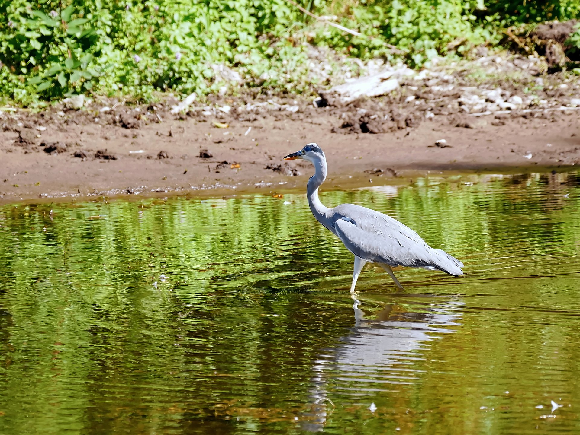 Nach den beiden 'auswärtigen' Reiherarten nun der einheimische Graureiher. Im Gegensatz zu den Gänsen sind die 'Auswertigen' bis jetzt noch nicht hierher vorgedrungen.